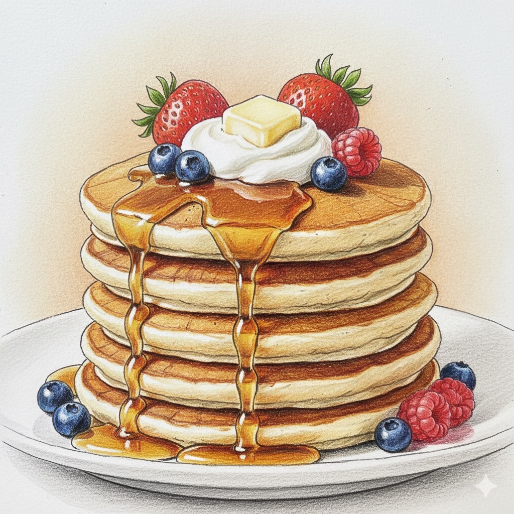 ホットケーキとパンケーキのイラスト画像の生成はGeminiに生成してもらって、